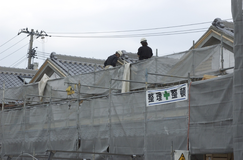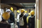 午後からは、「いかしの舎」に設けられている茶室を見学した後、早島駅前で、現在施工中の早島町の観光交流センター新築工事の現場を見学させていただきました。この観光交流センターは、早島町内に残る蔵を移築再生し、観光拠点として早島町が整備しているもので、今年度末に完成予定とのことでした。設計者の佐藤 隆 先生や、施工者の方の案内で、見学させていただき、日頃見ることのできない現場の様子に、学生から多くの質問 がでていました。
